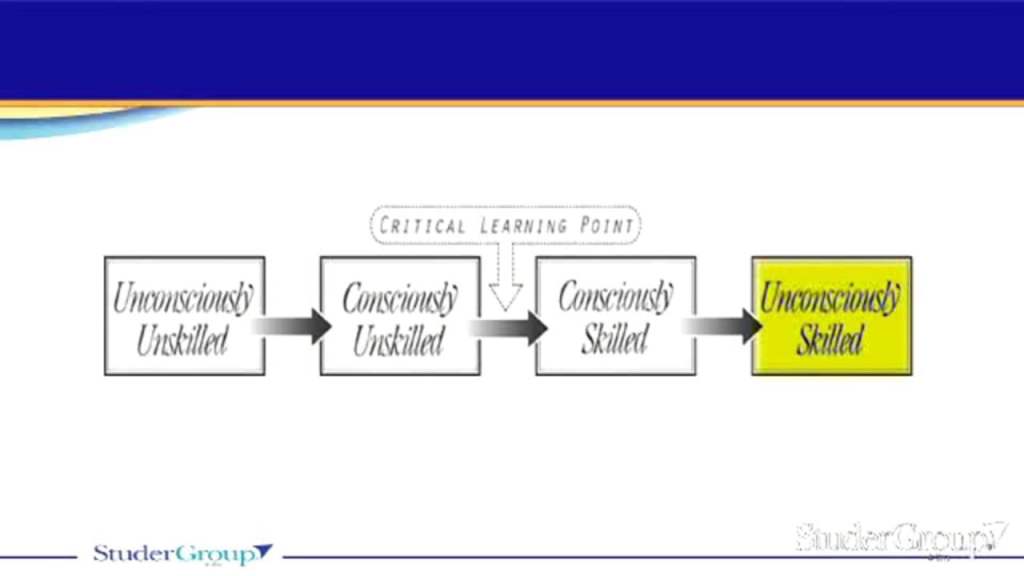 The key is they must receive constructive feedback for them progress to consciously skilled, even through the stresses of learning (creative tension). If there is no positive and constructive feedback to asses and show how to improve, then they will become stuck in unskilled phase. Especially if using punitive feedback. If they become comfortable, they become unconsciously skilled.