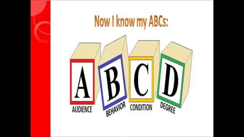 Here is a four-part ABCD formula for writing a successful Learning Objectives: